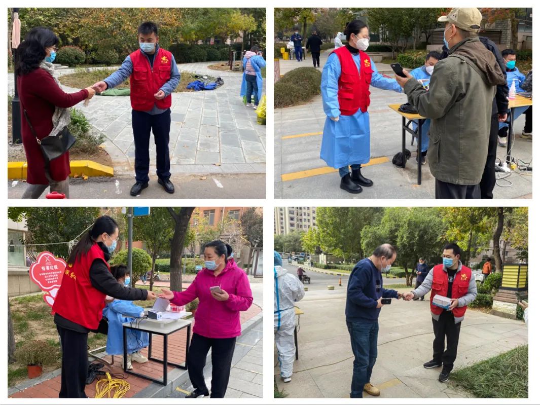 志愿服務(wù)暖人心。志愿者們準(zhǔn)時到達(dá)社區(qū)核酸采集點(diǎn),在各個檢測點(diǎn)幫助維持秩序,引導(dǎo)群眾保持安全距離,有序檢測,幫助老年群眾注冊核酸檢測信息碼,發(fā)放核酸檢測貼紙,宣傳疫情防控法律法規(guī),針對群眾提出的各項(xiàng)疑問進(jìn)行耐心解答。志愿者們在不同的崗位上履職盡責(zé),配合社區(qū)工作人員、醫(yī)務(wù)工作者明確分工、協(xié)調(diào)配合,大大提高了檢測效率,確保了社區(qū)按時完成全員核酸檢測工作。